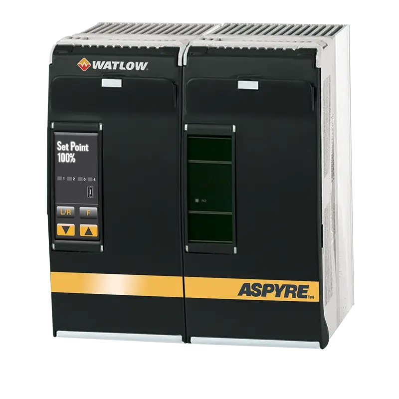 Get ultimate control, flexibility, and scalability with Watlow’s modular ASPYRE DT SCR Power Controller. Available in a wide range of configurations, this controller is customized to meet your application requirements and can include data logging or cooling fans, as needed. The controller features advanced firing and control mode algorithms and diagnostics for nichrome, moly, silicon carbide, tungsten quarts, infrared lamps, and transformer-coupled loads, and helps prevent heater bakeout in semiconductor, oil and gas, plastics, packaging, and heat treatment applications.